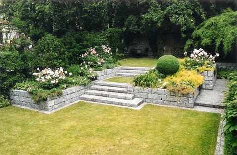 Wie so oft wurden auch in diesem Garten bestehende Hänge in horizontale Flächen